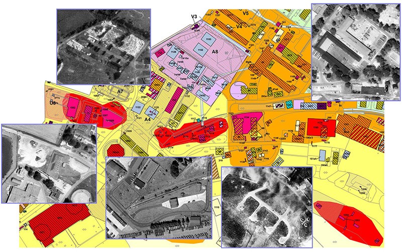 Eine stereoskopische Auswertung historischer Luftbilder vervoll- ständigt die Gebäude- und Anlagenkartierung. Außerdem können Lagerplätze, Altablagerungen, Verfüllungen, Abgrabungen und Auf- schüttungen lokalisiert und klassifiziert werden. Kriegseinwirkungen werden u.a. durch die Kartierung von Bombentrichtern und Gebäude- treffern erfasst und bilden für die Ableitung des Kontaminations- potentials eine wesentliche Grundlage. Die detaillierte Recherche führt zu erheblichen Kosteneinsparungen bei nachfolgenden chemisch-analytischen und sonstigen konkreten Unter- suchungen. Die Bewertung der Kontaminationspotentiale und ein Vorschlag zur orientierenden Untersuchung unterstützen das weitere Bearbeitungs- verfahren. Unsere Leistungen |