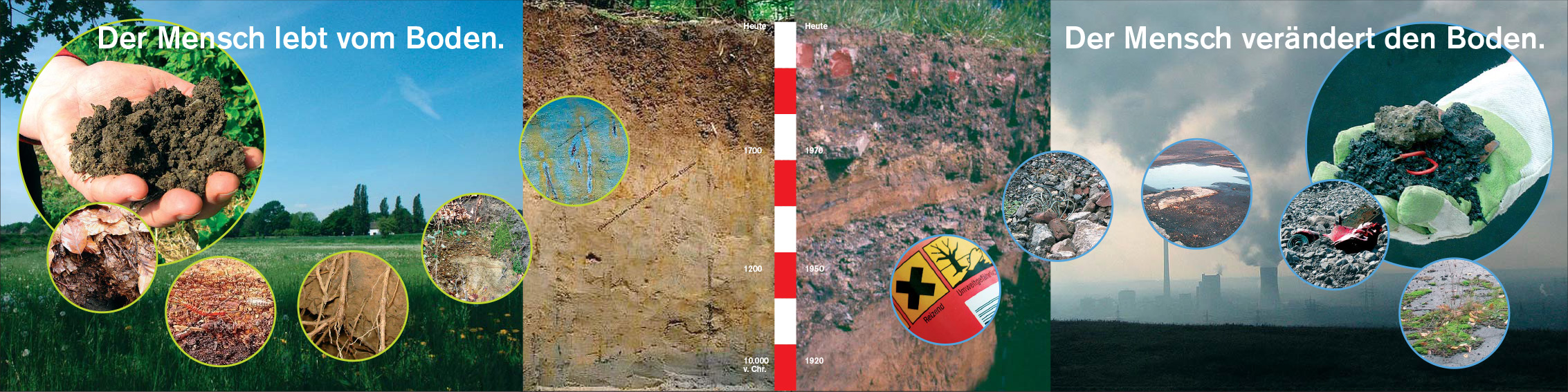 | Boden ist ein wesentlicher Bestandteil im Naturhaushalt. Seine große Bedeutung als Lebensgrundlage und Lebensraum für Menschen, Tier, Pflanzen und Bodenorganismen wird durch zahlreiche Belastungen beeinträchtigt. Neben Schadstoffeinträgen gehören hierzu physikalische Belastungen durch Erosion oder Verdichtung und insbesondere der Verlust des Bodens bei Überbauung. Da Boden in menschlichen Zeitmaßstäben nicht erneuerbar ist, kommt seinem Schutz eine besondere Bedeutung zu. |
