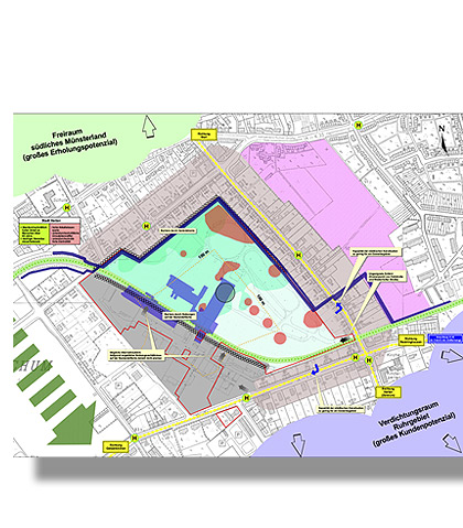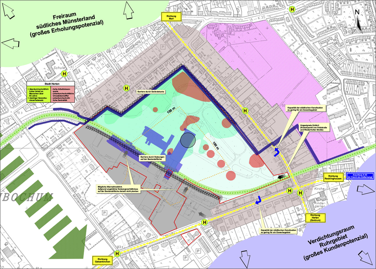 Das Plan-Zentrum Umwelt bewertet die Potenziale und Restriktionen von Entwicklungsflächen. Bei dieser Bewertung fließen sowohl flächenbedingte Faktoren, wie z. B. chemische und bauliche Altlasten, Größe, Infrastruktur und Expansionsmöglichkeit, als auch lagebedingte Faktoren, z. B. die städtebaulichen Gegebenheiten, Verkehrsanbindungen und planungsrechtliche Vorgaben ein. Ziel ist es, für die jeweilige Entwicklungsfläche ein Bewertungs-Profil zu erstellen, das als Basis für die weitere Planung dient.